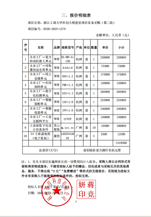 1 | 投标报价:1618500(元) | 杭州智珵科技有限公司 | 浙江省杭州市余杭区仓前街道龙潭路16号3幢北1层130室 |